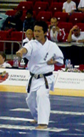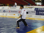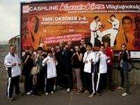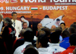 続いて男子の予選が始まり、井上雄太さんが後半の部トップバッターで演武し、増子先生が5番目、伊熊先生が6番目と続きました。最後の一人が終わるまで気の抜けない試合展開の中、ビデオを片手で構えながらもう片方の手でデジカメを操り、慣れないハンガリー語で発表される得点を紙に書き写している間に予選はあっという間に終わってしまいました。