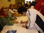 選手登録会場はとても混雑していて中々進まず、ようやく選手登録が終わってもゼッケンを縫いつけるのにまた長時間待たされていました。ロシアでは同行したお母さん達が道着にゼッケンを縫い付ける作業をしたと聞いたので、今回は私も裁縫道具を持ってきていましたが、ハンガリーではミシンで縫いつけるところまでやってくれたのでとても親切だと感じました。