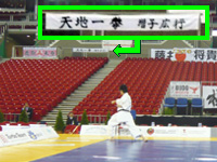 「五十四歩!!」型名を告げ、演武が始まりました。何処と無く硬い…そんな印象を型に持った時、最初の気合の声が思いっきり裏返りました。「力みすぎてる!!」そう思ってからは心臓が潰れそうなくらい苦しくなり、どうか失敗を引きずらないで頑張って!と祈っていました。息の詰まるような型が終わり、得点が読み上げられました。暫定1位。もうその頃から緩み始めた涙腺をどうにかなだめすかし、最後の演武者である伊熊先生の型を静かに見届けました。