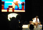 続いて増子先生が舞台に上がります。選手紹介のアナウンスが終わる頃、私は光の中で緊張しているであろう増子先生に少しでも余裕が生れるよう「頑張れ!」と声を掛けるつもりでした。けれど、アナウンスが終わるか終わらないかの頃にスッ…と集中する様子が見て取れたので、邪魔になってはいけないと声をかけるのを止めました。