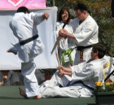●平田村芝桜まつりで演武を披露! 平成26年5月4日(日)にジュピアランドひらた「芝桜まつり」において、平田道場主催の演武を実施し玉川道場生も参加しました。 ●極真館指導者ストレッチ講習会に参加! 平成26年5月25日(日)福島県主催によるストレッチ講習会が郡山市「ミュージカルアートスクエア」というバレエ教室で開催されました。 ●各種大会祝賀会開催! 平成26年5月29日(木)19時から玉川村就業改善センターにおいて、玉川分支部主催による各種大会祝賀会が行われ、40名が出席しました。 今回は、「第3回全世界空手道型競技選手権大会」、「第1回全日本型競技錬成大会」、「第14回福島県南地区空手道大会」、「第13回南東北空手道選手権大会」、「第12回会津空手道選手権大会」、「第10回極真館型競技錬成大会」、「第19回福島県空手道選手権大会」、「2014全日本青少年空手道選手権大会」に入賞された14名の選手をお祝いする会でした。 増子広行分支部長、来賓の馬場哲明指導員の挨拶の後、入賞者紹介があり入賞者を代表して増子夏穂さんが挨拶しました。 その後、入賞者一人一人へ宮崎マンゴーのプレゼントがあり、馬場指導員から手渡されました。 この祝賀会は、準備から後片付けまで道場生・保護者が全員で行い、手作り感満載の祝賀会となりました。 ●増子分支部長が中学校で講師! この企画は、中学生に職業について身近に感じてもらうことをコンセプトにしており、増子分支部長の他にも小学校の校長先生や魚屋さん、事務用品屋さん、警察官、音楽の先生、鍼灸師など様々な業種の方が講師となりました。 増子分支部長は職場の話以外にも空手についても話し、子供達に以下ようなことを伝えました。 ・様々な方と関わり合いをもち、沢山のことを経験しよう。 ・これからの人生で心が折れそうな時、何かを辞めようと思うときが来ると思うが、なるべく逃げず、出来る限りのことはしよう。 ・何でもよいので、これだけは誰にも負けないというものを持とう。 この講演が子供達が将来を真剣に考えるきっかけとなり、それぞれの夢に向けての足がかりになるといいですね。 ●浅川交流空手道錬成大会開催! 平成26年6月7日(土)に浅川武道館において第1回浅川交流空手道錬成大会が開催されました。 この大会は浅川道場が主体となって執り行う初めての大会で、玉川道場から9名の入賞者が出ました。 特筆すべきは小学4年生の部に出場した矢吹流夏君と男女混合の小学6年生の部に出場した増子夏穂さんで、流夏君は上段回し蹴りでポイントを稼ぎ優勝、夏穂さんは男の子相手に一回戦を突破し準優勝となりました。男女の力の差に泣いてしまう子も居た中、ナイスファイトだったと思います。 その他の入賞者は、小学1年の部(男女混合)第3位に矢吹結衣さんと大川内莉央さん、小学3年の部(男女混合)準優勝に我妻翔君、第3位に大川内悠月君と増子遥菜さん、小学4年男子の部第3位に大竹巨晃君、小学5.6年の部(男女混合)第3位に我妻来飛君でした。 県南大会前に良い練習試合になりました。 |
