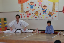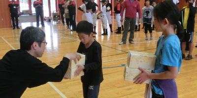 | ●けんしん祭り演武に参加! 平成27年9月12日(土)に石川町のけんしん石川支店主催イベント「いしかわ商店街フェアー」において、極真館石川道場を中心として演武に参加しました。 玉川分支部からは増子遥菜さんが型と板割りを、吉村和奏さんと吉村治希君と吉田征広君がハンドミットの回し蹴りを、我妻来飛君が組手と板割りを披露し、大越指導員が瓦割りを披露しました。 今回は魅せる空手をコンセプトに演武したので、一つの演武が終わる毎に大きな声援が沸き起こりました。 演武の後には主催者から頂いたゲームの参加権でお祭りも楽しめ、とても良い一日となりました。 ●型錬成大会にて遥菜さんが入賞! この部門では、福島県勢の出場は遥菜さんのみで、相手の選手全員が関東勢でしたが、臆する事なく持ち味の丁寧な型を演武し見事第3位入賞を果たしました。 以下に遥菜さんのコメントを掲載します。 【遥菜さんのコメント】 今回は点数制だったのでとても緊張しました。 4位の選手と1点差だったので、もっと点数が取れるように頑張りたいです。 ●いずみ幼稚園で演武! 平成27年10月6日(火)にいずみ幼稚園において、毎年恒例の朝の会演武を実施しました。 演武前に増子分支部長からのお話のコーナーがあり、お友達をいじめないことなどをお願いしました。 さっそく演武に入り技の解説をした後、六尺棒での周氏の棍、撃砕小の型、最後に瓦割りを行い演武を締めくくりました。 最後にお手本として道場生の佐藤優真君に前に来てもらい、皆で柔軟と突きと前蹴りを元気よく行いました。道場では入ったばかりの優真君ですが、この日は誰よりも上手に出来たので、得意げにお手本を見せていました。 他の園児達も見よう見真似ながら一生懸命技を出していて、気合も大きく増子分支部長は子供達からたくさんのパワーをもらえました。 ●スポーツフェスタにて玉川拳士が大健闘! 平成27年10月10日(土)にたまかわ文化体育館において、2015たまかわスポーツフェスタが開催され、玉川分支部行事として10名が参加しニュースポーツを楽しみました。 ワンバウンドふらばーるには増子広行分支部長含めた6名が、三輪バギーには4名1チームが参加しました。 「ワンバウンドふらばーる」とは、いびつな形のビーチバレーボールでバレーボールをする競技で、必ずワンバウンドさせてから打ち返すという特殊性があります。大人1人で奮闘した増子分支部長チームは波乱の内容だったようなので、増子分支部長のレポートをそのまま載せたいと思います。 『今回のメンバーは大竹巨晃君、小針朋也君、森隆来君、森来斗君、森悠喜君と私の6名でした。 1試合目は家庭バレーボールチームとの対戦で、私以外は全て小学生のこのチームがいつもバレーをやりこんでいる大人チームと対戦するのはあまりに酷でした。なかなかボールを繋げることが出来ず、ぼろ負けだったので皆やる気が失せてしまいました。 2試合目に入り、気持ちを新たにしてミニバスケットチームとの対戦に望みました。今度は子供VS子供の構図で負けるわけにはいきません。 森来斗君のサービスエースが何度も決まってリードしていましたが、ここでまさかの森隆来君と森悠喜君の兄弟喧嘩が勃発! 悠喜君が泣いてしまい動かなくなってしまいました。 ぎりぎりの人数で出場していたため、ポジションをずらしたり励ますことでなんとか機嫌を取り戻し、戦線復帰してくれたおかげで試合も逆転されることなく1勝することができました。 結果的に1勝1負で入賞することは出来ませんでしたが、短い時間で様々なドラマがあり、充実したイベントとなりました。』 予選と決勝の2回走りましたが、決勝ではさらにタイムが縮まりその日の最高タイムを記録し、一人一人に優勝賞品の生めん(九州めん自慢)が贈られました。 競技終了後は振る舞われたすいとん汁を味わい、さわやかな秋空の下充実した一日を過ごすことが出来ました。 |
