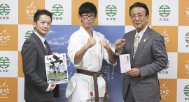 ●玉川村長へ世界大会出場報告! 増子遥菜さんが平成29年10月4日に玉川村役場を訪問し、石森春男村長へ世界大会の出場について報告を行いました。 遥菜さんは、春の全日本大会準優勝が決め手となり、日本代表の切符を手に入れたこと、また11月25日に開催される世界大会では優勝を目指して頑張ることを石森村長へ力強く宣言しました。 この度は石森村長をはじめとする村関係者の皆様本当にありがとうございました。 ●矢吹町長へ世界大会出場報告! 佐藤竜也君が平成29年10月27日に矢吹町役場を訪問し、野崎吉郎町長へ世界大会の出場について報告をしました。 竜也君も、春の全日本大会準優勝が決め手となり日本代表の切符を手に入れたこと、また11月25日に開催される世界大会では海外勢に絶対に負けない強い気持ちで優勝を目指すことを野崎町長へ力強く宣言しました。 なお、矢吹町から激励金までいただきました。町関係者の皆様本当にありがとうございました。 ●世界大会代表2選手に保護者会から激励金! 11月25〜26日に東京体育館で開催される全世界青少年空手道選手権大会の日本代表選手に、男子組手(満16〜17才70以下級)の部で佐藤竜也君が、女子型(小学5〜6年生)の部で増子遥菜さんがそれぞれ選ばれました。 日本代表に選ばれた2名に、小針香保護者会長から激励金が手渡されました。 ●日露青年交流事業開催! 玉川村では、日露青年交流事業として、10月26日〜30日の日程でロシアのリャザン国立大学の大学生を招聘し、村中学生との交流や武道交流等を実施しました。 玉川分支部では、10月28日(土)にたまかわ文化体育館において、ロシアとの合同稽古を実施しました。 玉川村の石森春男村長に挨拶いただき、全員で記念撮影後、増子広行分支部長による基本と移動稽古の指導がありました。 この日は玉川道場生だけでなく、近隣道場や県外の道場まで沢山の道場生が集まり、ロシアの大学生と共に汗を流すことが出来ました。 セルゲイ師範やオレグ先生をはじめとして10名の大学生と交流できたことは、玉川分支部にとってとてもいい経験であり、今回だけでなく今後もこの交流が引き続き行われることを期待いたします。 |