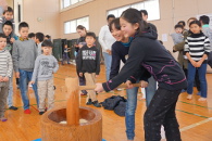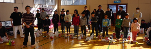 | ●鏡開き初稽古! 10時からの初稽古では岡崎寛人首席師範による基本・移動・型・組手の指導があり、全員で汗を流しました。11時30分からは恒例の餅つきを行い、今回初めて餅つきをするという道場生もいて大変盛り上がりました。その後交流会を行い、お菓子やつきたてのお餅を使ったあんこ餅やお雑煮、また保護者の方からご提供いただいたホウレン草のおひたしを食べながら、各道場ごとの新年の抱負に耳を傾けました。玉川道場では昨年全世界青少年大会で準優勝した増子遥菜さんが、さらに上を目指した今後の抱負を述べました。 お腹が満たされた後は楽しいレクリエーションの時間で、今年は道場対抗空手技ビンゴ大会を行い楽しい時間を過ごすことが出来ました。 この鏡開きのために前日の仕込みや当日朝からの準備にお手伝いいただきました保護者の皆様をはじめ、景品のご提供等ご尽力いただいた皆様に感謝いたします。 2018年も福島県支部を盛り上げて参りましょう!! |